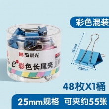 晨光(M&G)Eplus彩色长尾夹 金属票据夹 文件夹 Eplus系列办公燕尾夹 25mm ABS92741 彩色48只/罐 5罐
