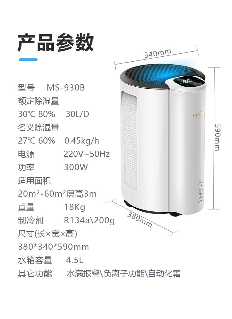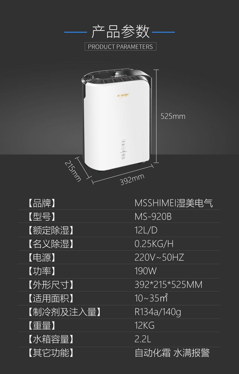 ¥35.00湿美(MSSHIMEI)工业除湿机适用:650-700㎡仓库车间除湿器地下室干燥机MS-9480B