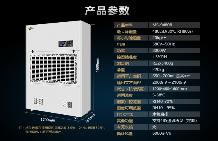 工业除湿机适用:650-700㎡仓库车间除湿器地下室干燥机MS-9480B