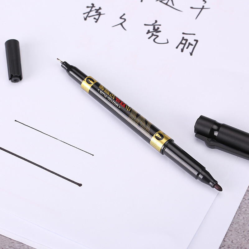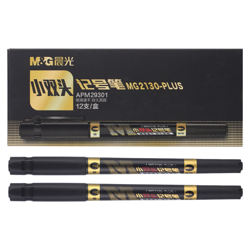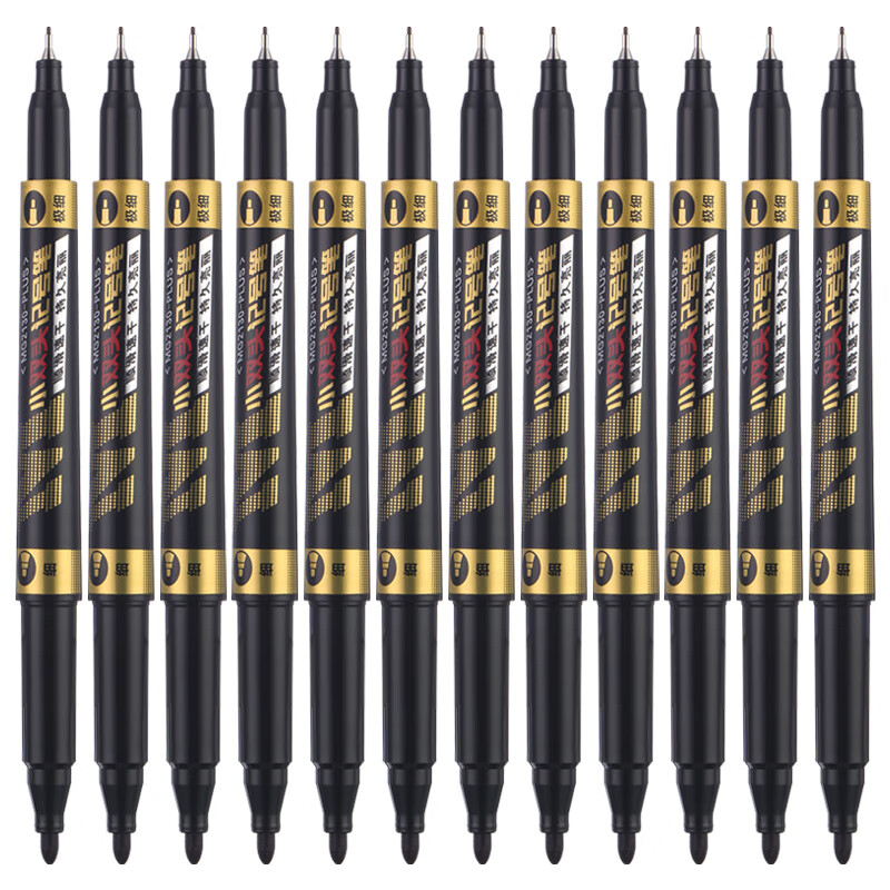 晨光(M&G)文具12支黑色双头记号笔 大容量细杆签字笔 油性勾线笔 物流学生重点标记 办公用品 MG2130-Plus 自营