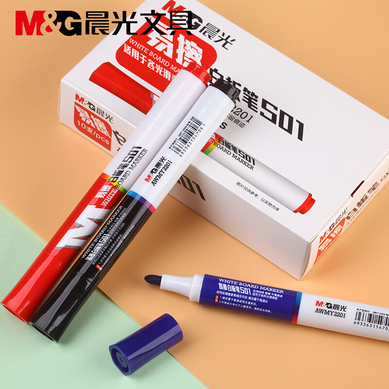 晨光(M&G) 白板笔可擦黑板笔教师用水性记号笔画板笔粗头易擦白班笔办公用品文具批发 Y2201红色10支 自营