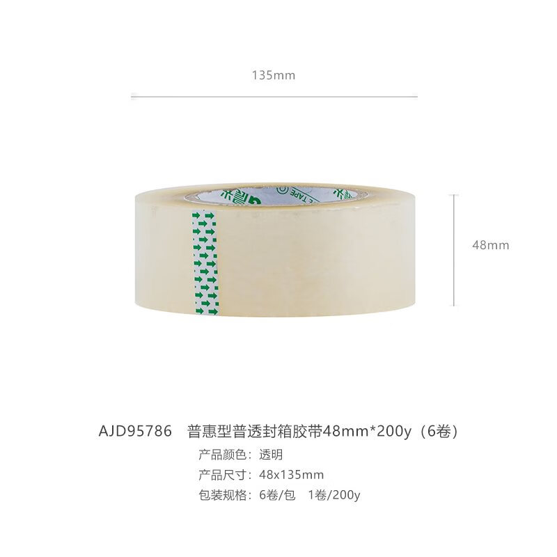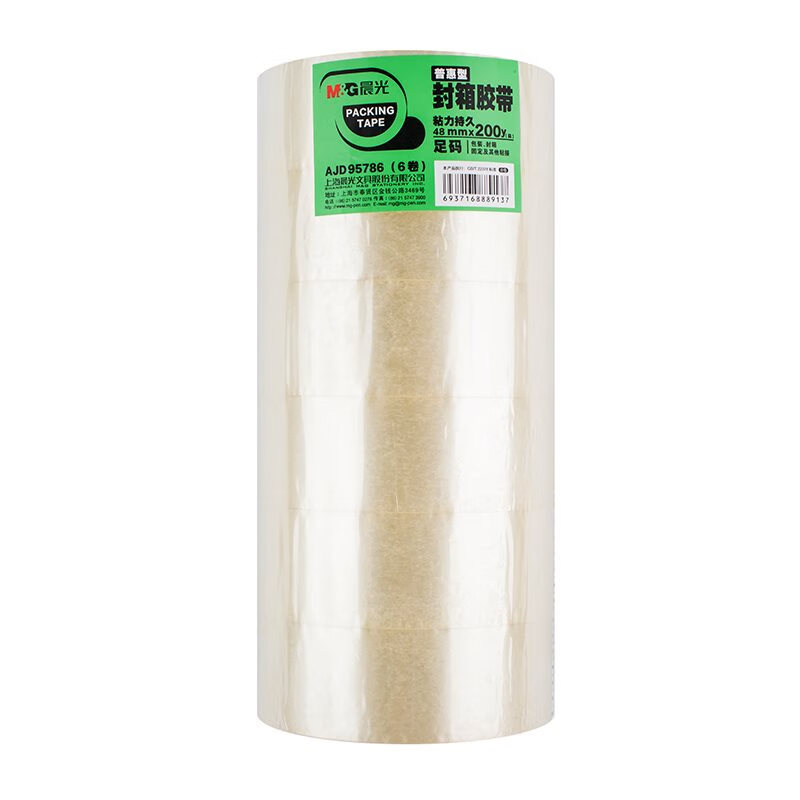 ¥9.80晨光(M&G)文具透明封箱胶带打包胶带大胶布 48mm*30y*45um (27.4米/卷) 6卷/筒 办公用品 AJD97326