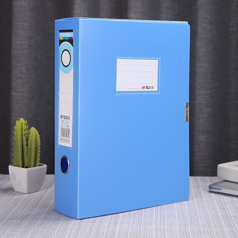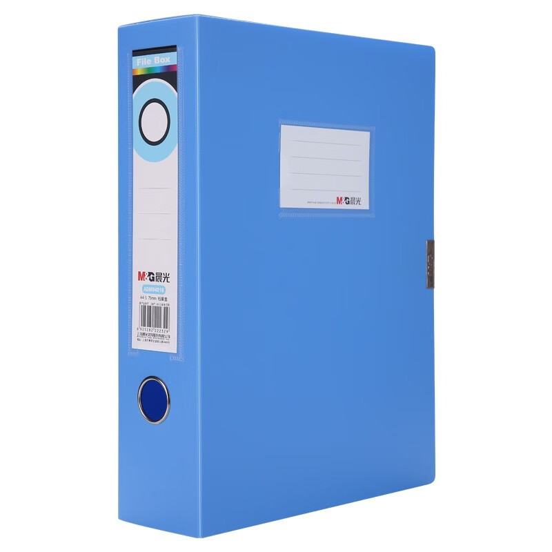 晨光(M&G)ADM94818B 4寸档案盒文件收纳整理 耐用牢固粘扣 A4文件盒资料盒 背宽75mm 蓝色 单个装 自营