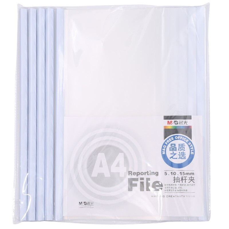 晨光(M&G)文具A4/10mm白色三角杆抽杆夹 办公报告夹拉杆夹 资料整理收纳文件夹 10个装ADM94520 自营