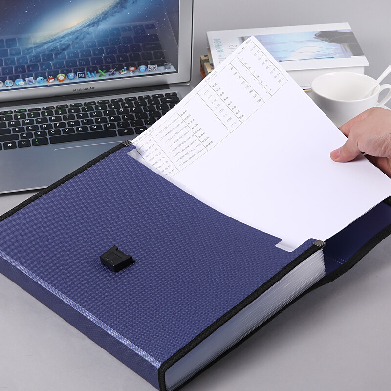 晨光(M&G)文具A4/12格蓝色文件包 办公手提资料包风琴包 学生试卷分类收纳包 单个装AWT90959 自营
