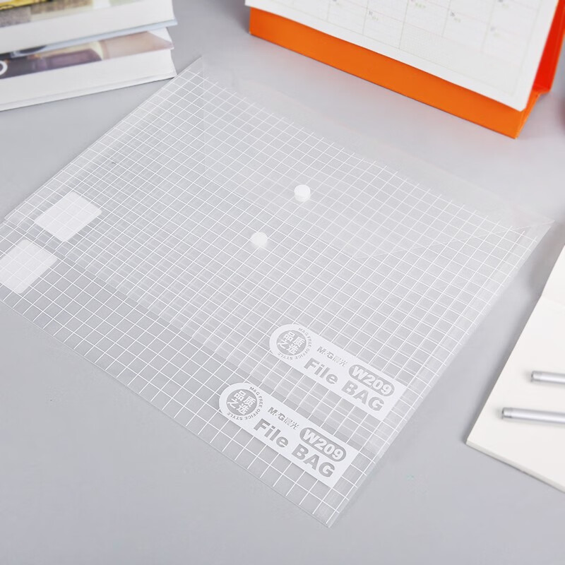 晨光(M&G)文具A4白色方格纽扣袋 按扣袋 办公文件袋资料整理文件套 按扣方格白 12个装 自营