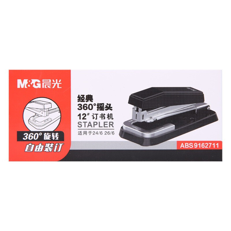 晨光 3个黑色12号360度摇头订书机 可旋转针板省力订书器ABS91627 自营