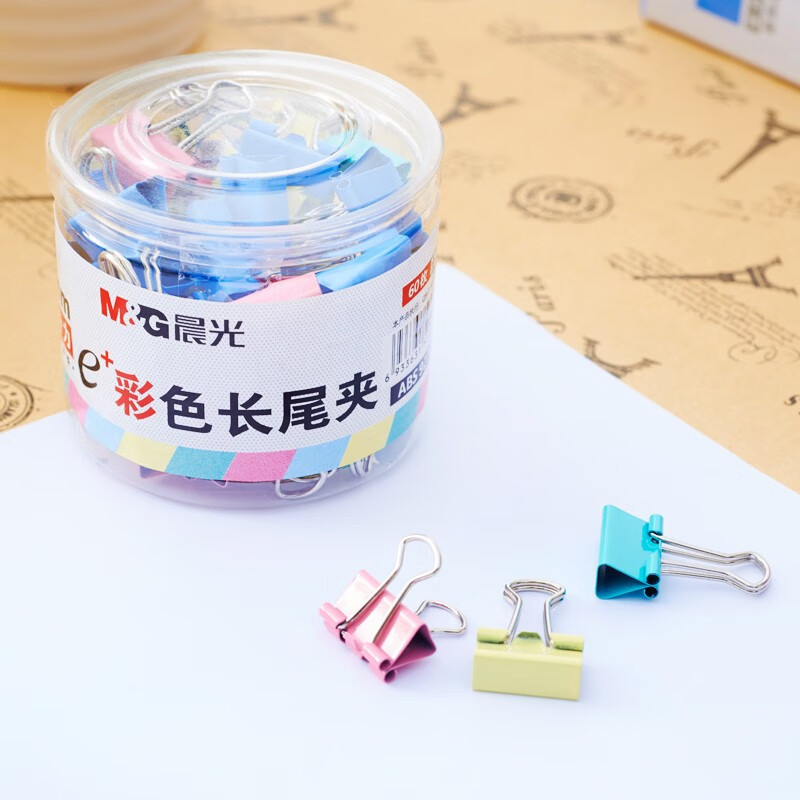 晨光(M&G)Eplus彩色长尾夹 金属票据夹 文件夹 Eplus系列办公燕尾夹 15mm(罐装)ABS92743 彩色60只/罐 自营