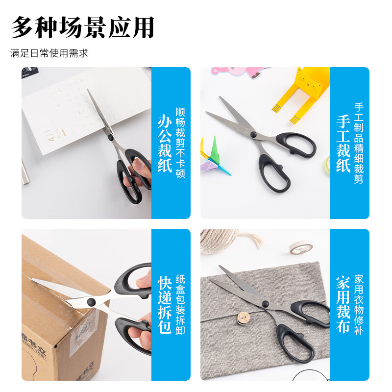 晨光文具195mm办公家用剪刀 大号手工剪纸刀 办公用品 黑色单把装ASS91312 自营