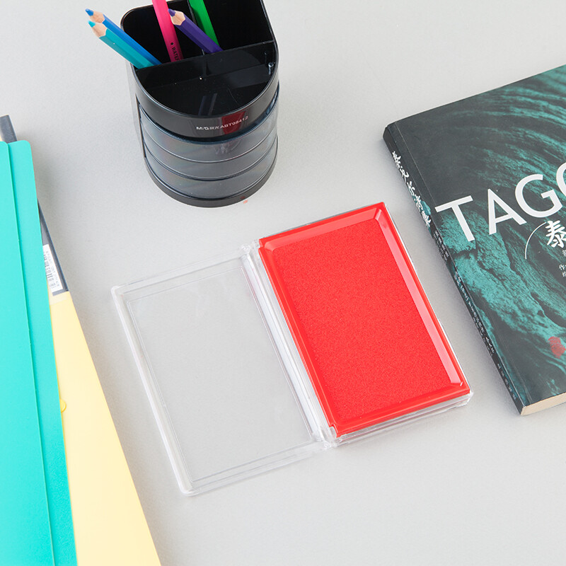 晨光(M&G)文具红色财务专用印台 138*88mm方形透明快干印泥 4个装AYZ97513 自营