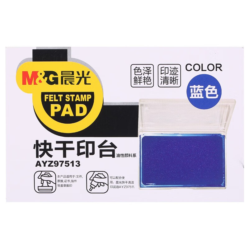 晨光(M&G)文具137*88mm透明外壳方形快干印台印泥 办公用品 蓝色单个装AYZ97513 自营