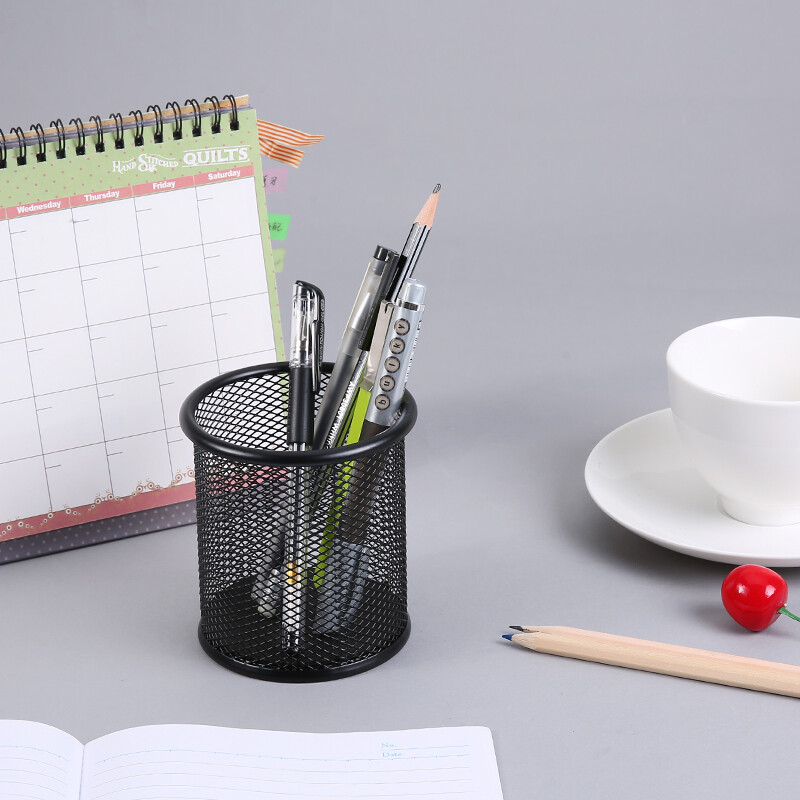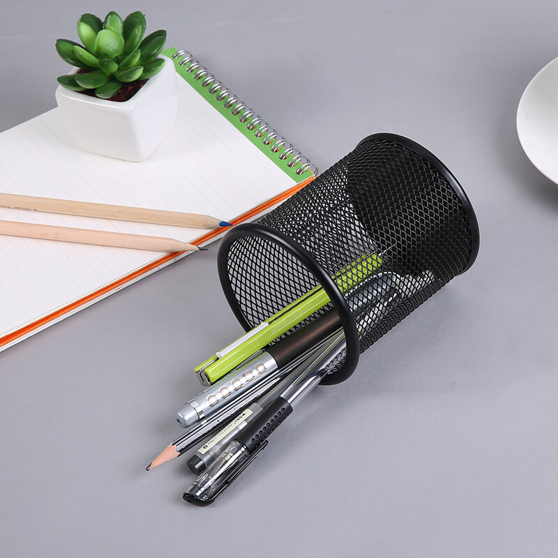 晨光(M&G)文具金属圆形网格笔筒 学生办公通用桌面收纳盒 黑色单个装ABT98404 自营