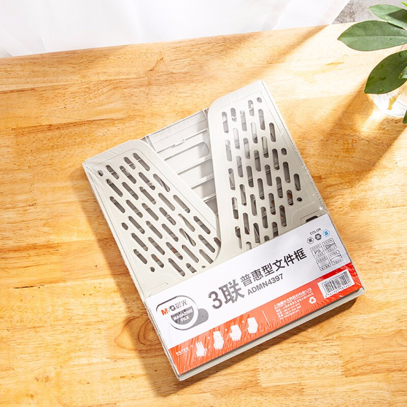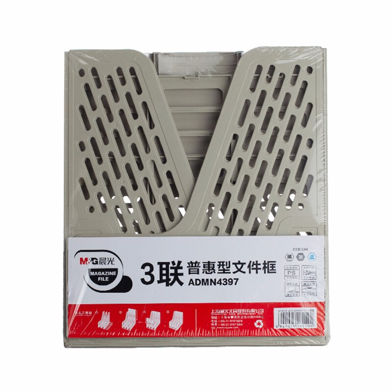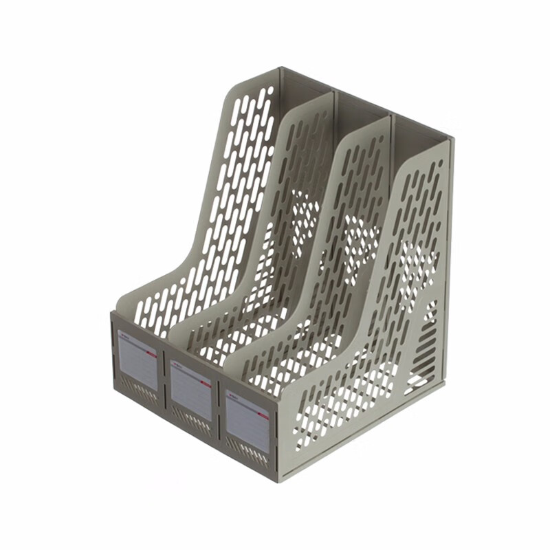 晨光(M&G)文具三联镂空桌面文件框 三栏带标签稳固文件栏/文件筐/资料框 灰色单个装ADMN4397K 自营