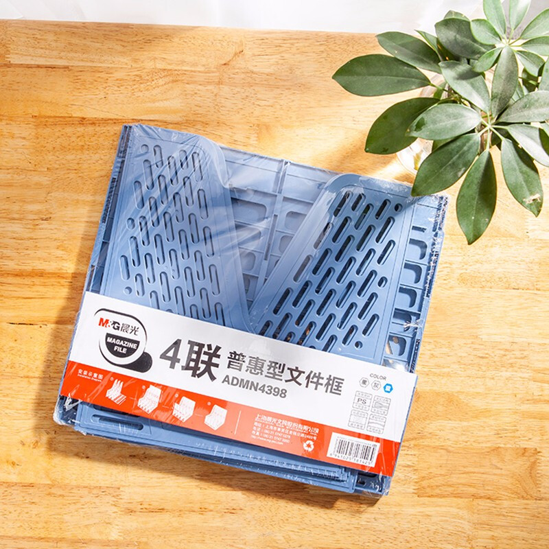 晨光(M&G)文具四联镂空桌面文件框 四栏带标签稳固文件栏/文件筐/资料框 蓝色单个装ADMN4398B 自营