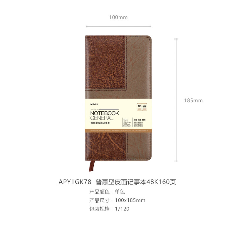 晨光(M&G)文具48K/160张棕色办公笔记本 会议记录皮面本 普惠型日记本商务记事本子 单本装APY1GK78 自营