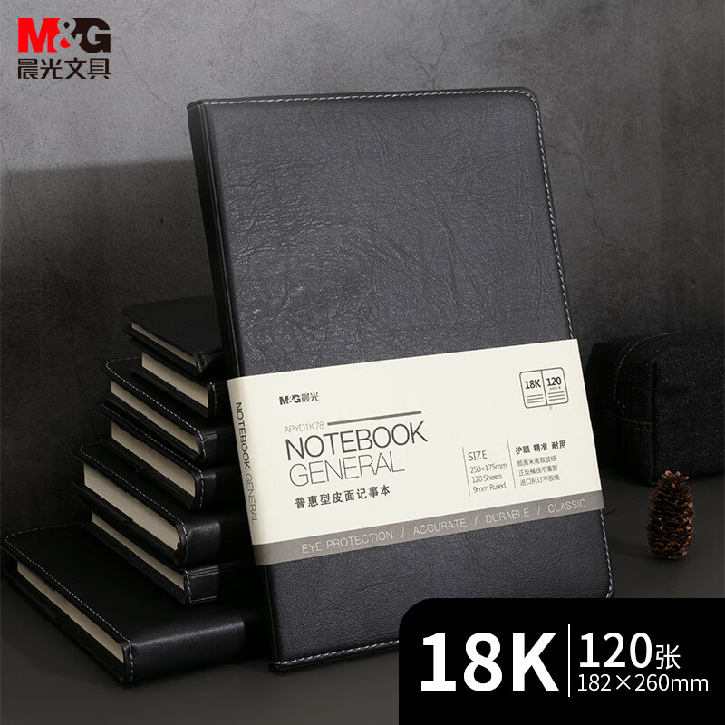 晨光(M&G)文具B5/18K 120张黑色办公笔记本 会议记录皮面本 普惠型商务记事本子 单本装APYD1K78 自营