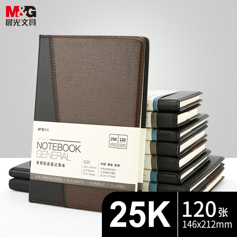 晨光(M&G)文具A5/25K 120张撞色办公笔记本子 会议记录皮面本 普惠型日记本商务记事本子 单本装APYD2K78 自营