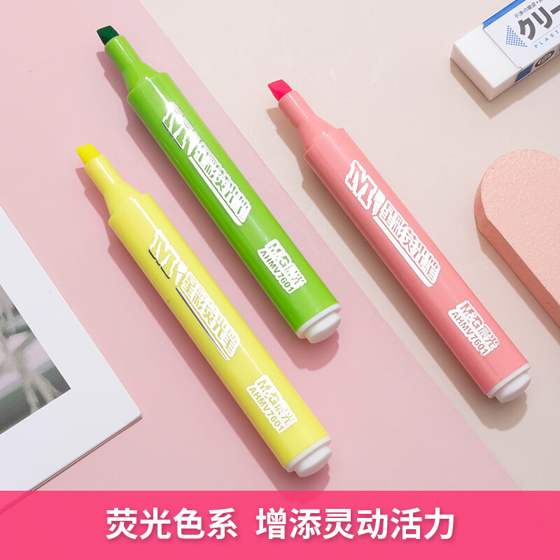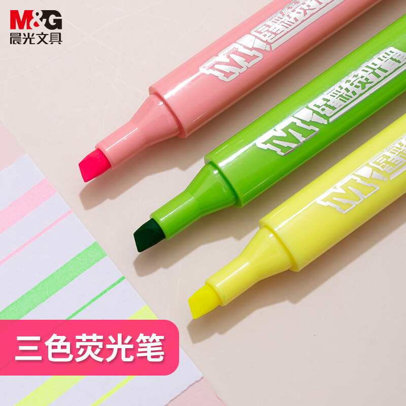 晨光(M&G)文具3色荧光笔 办公学生通用醒目重点标记笔 星彩系列手账手绘记号笔 3支/盒AHMV7601 自营