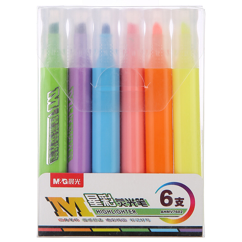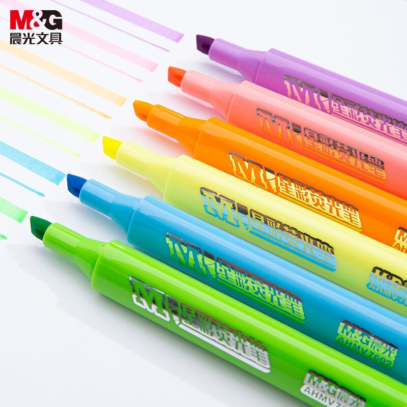 晨光(M&G)文具6色荧光笔 经典单头记号笔 醒目重点标记笔 星彩系列水性手账手绘笔 6支/盒AHMV7602 自营