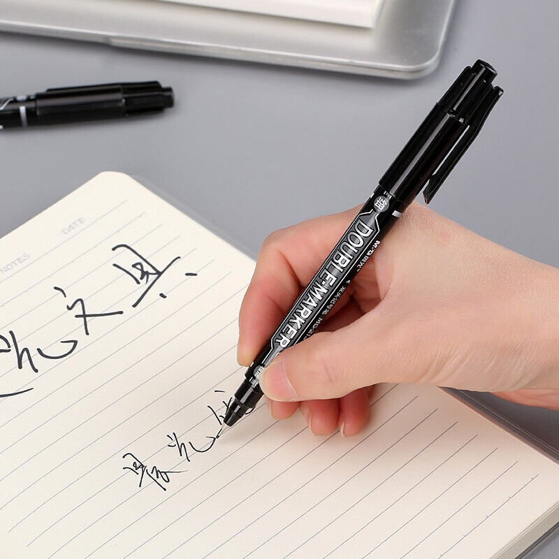 晨光文具 MG2130A 黑色记号笔 经典办公双头好檫耐用 12支/盒 3盒装 自营
