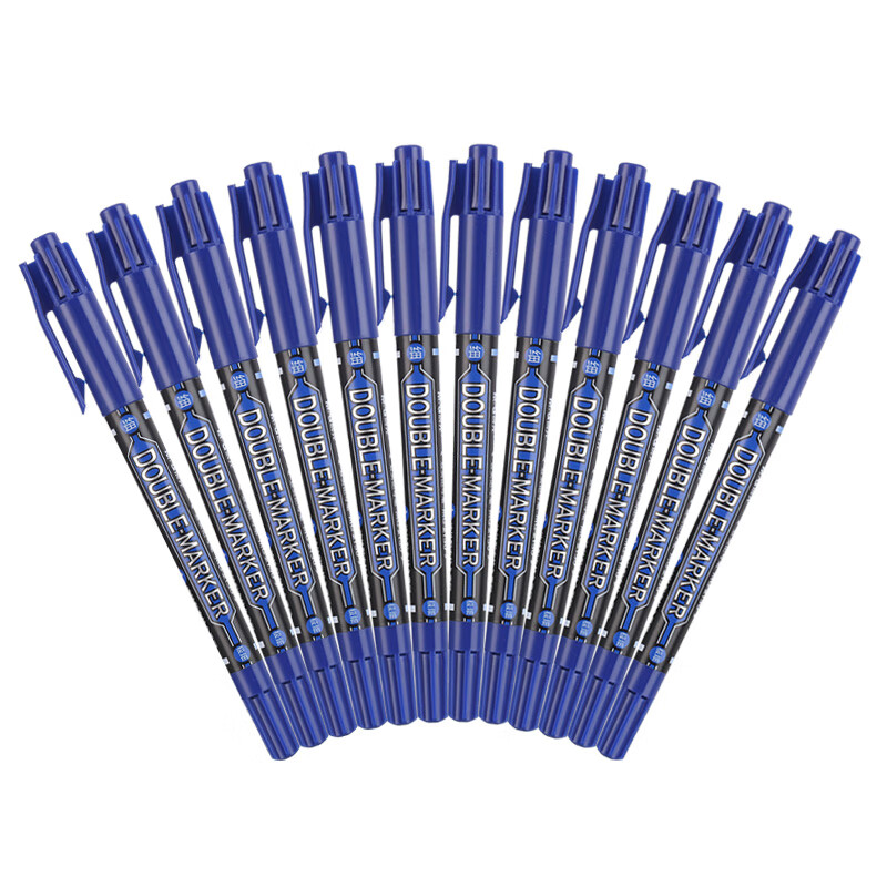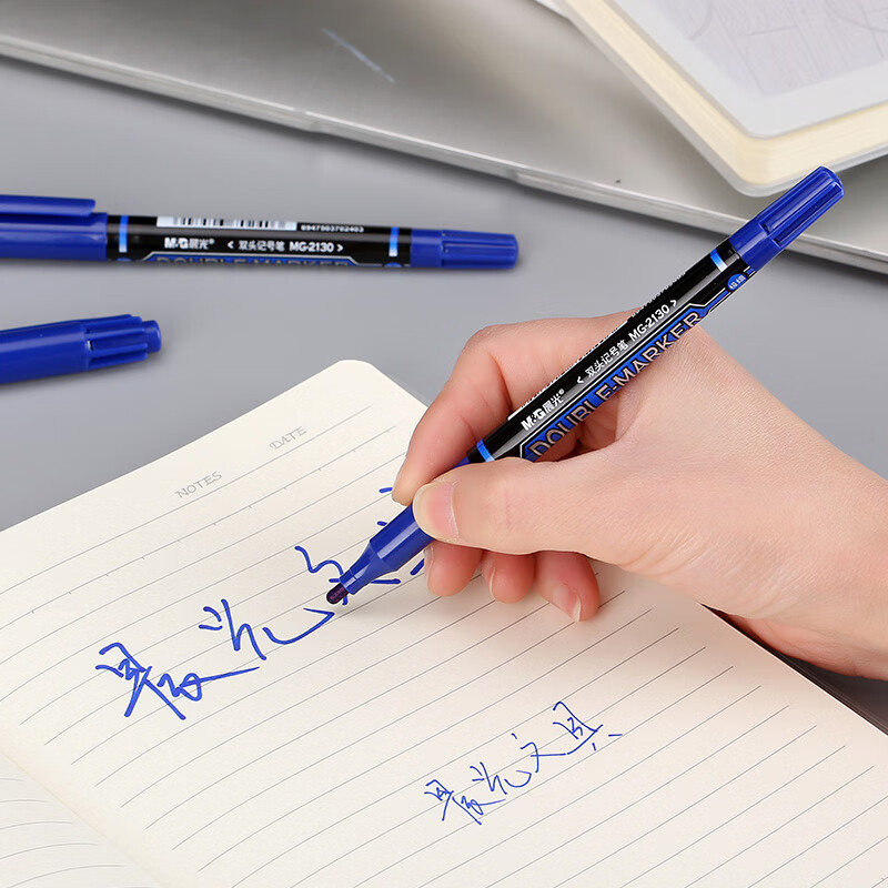晨光(M&G)文具蓝色双头细杆记号笔 学生勾线笔 学习办公重点标记笔 12支/盒 2盒装 MG2130B 自营