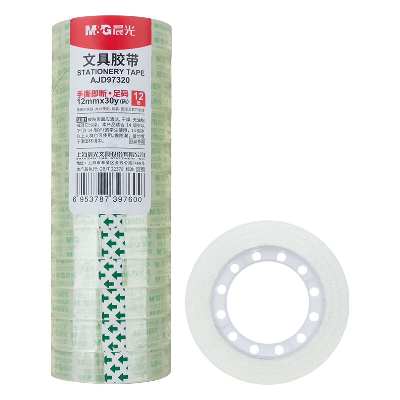 晨光(M&G)文具透明胶带 高透易撕小胶带 学生手工胶布12mm30y(27.42米/卷) 12卷装AJD97320 自营