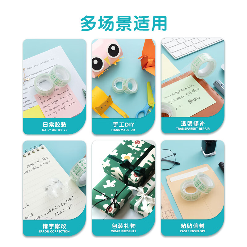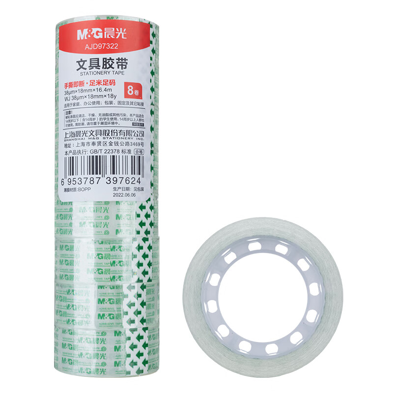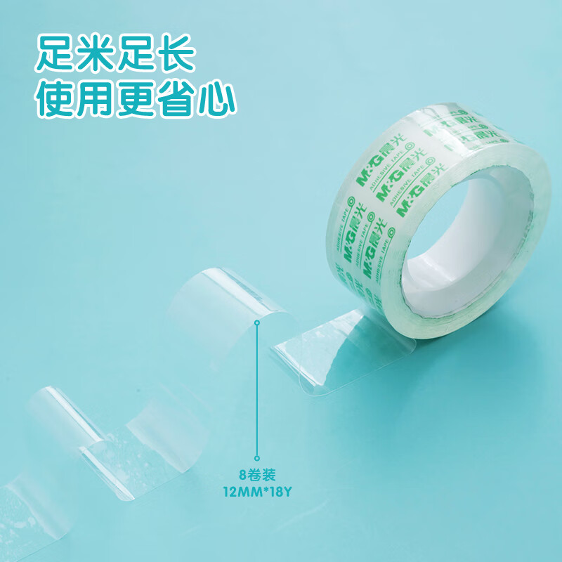 晨光(M&G)文具透明胶带 高透易撕小胶带 学生手工胶布18mm*18y(16.5米/卷) 8卷装AJD97322 自营