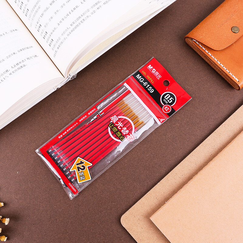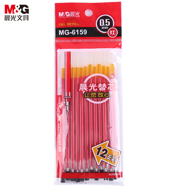 晨光(M&G)文具红色0.5mm半针管中性笔芯 签字笔替芯 经济型水笔芯 12支装MG6159 自营