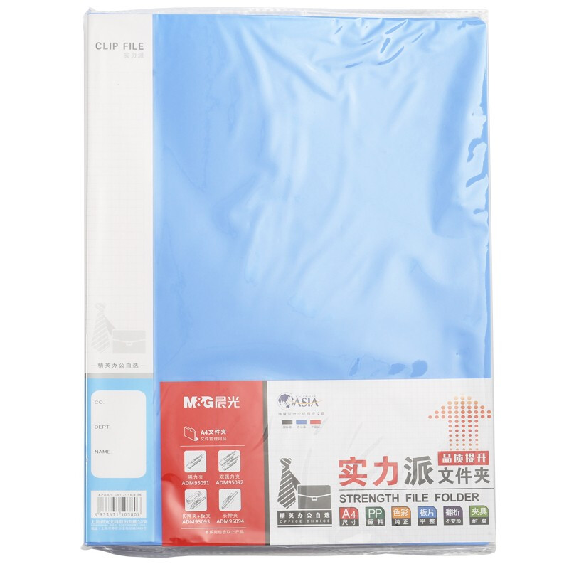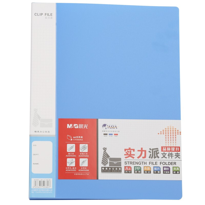 晨光(M&G)文具A4蓝色单强力夹 文件夹资料夹 实力派办公文件收纳夹(含斜内袋) 单个装ADM95091B 自营