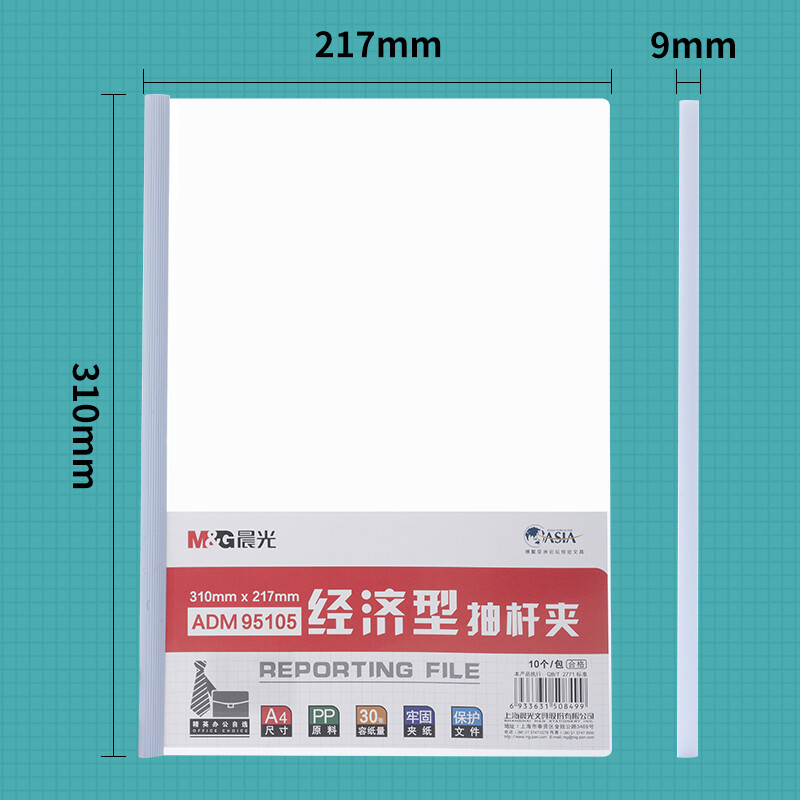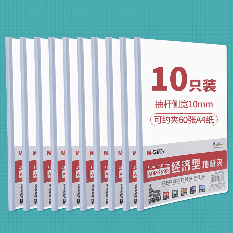 晨光(M&G)文具10个装A4/10mm办公抽杆夹 经济型透明文件夹资料夹 会议报告夹拉杆夹ADM95105 自营