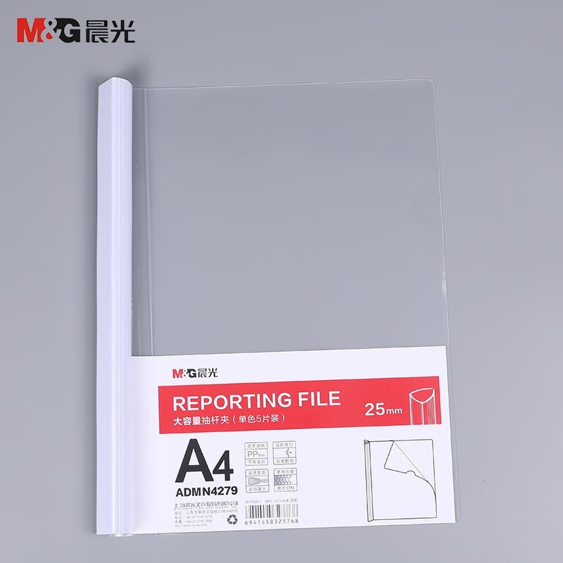 晨光(M&G)文具A4/25mm彩色办公抽杆夹 经济型文件夹资料夹 会议报告夹拉杆夹大容量抽杆夹 5个/包 ADMN4279 自营