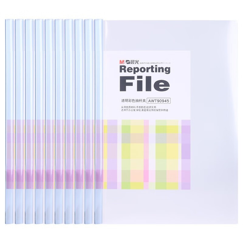 晨光(M&G)文具A4/8mm透明抽杆夹资料文件夹办公报告夹彩色拉杆夹 A4 10个装(颜色随机)AWT90945 自营