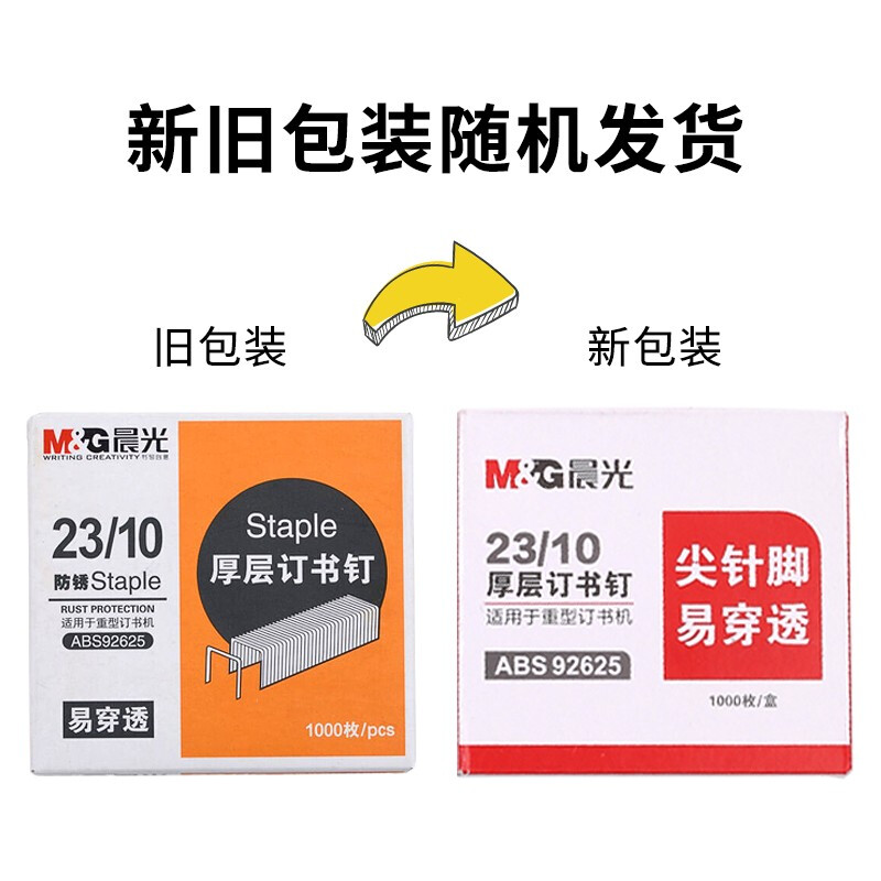 晨光(M&G)ABS92625 23/10厚层订书钉 重型订书机尖针脚易穿透常规办公室桌面装订 办公用品 5盒装 自营