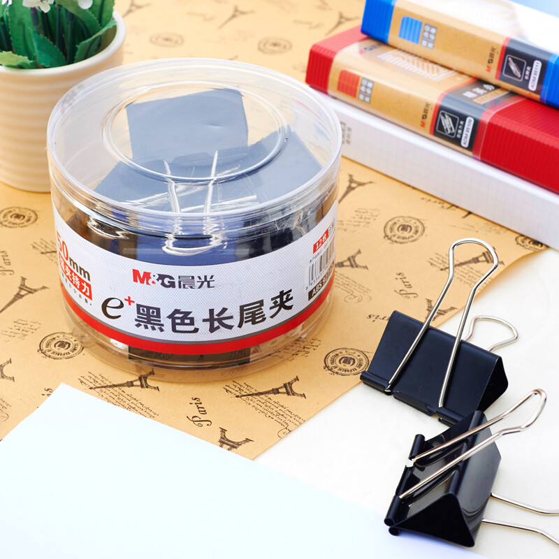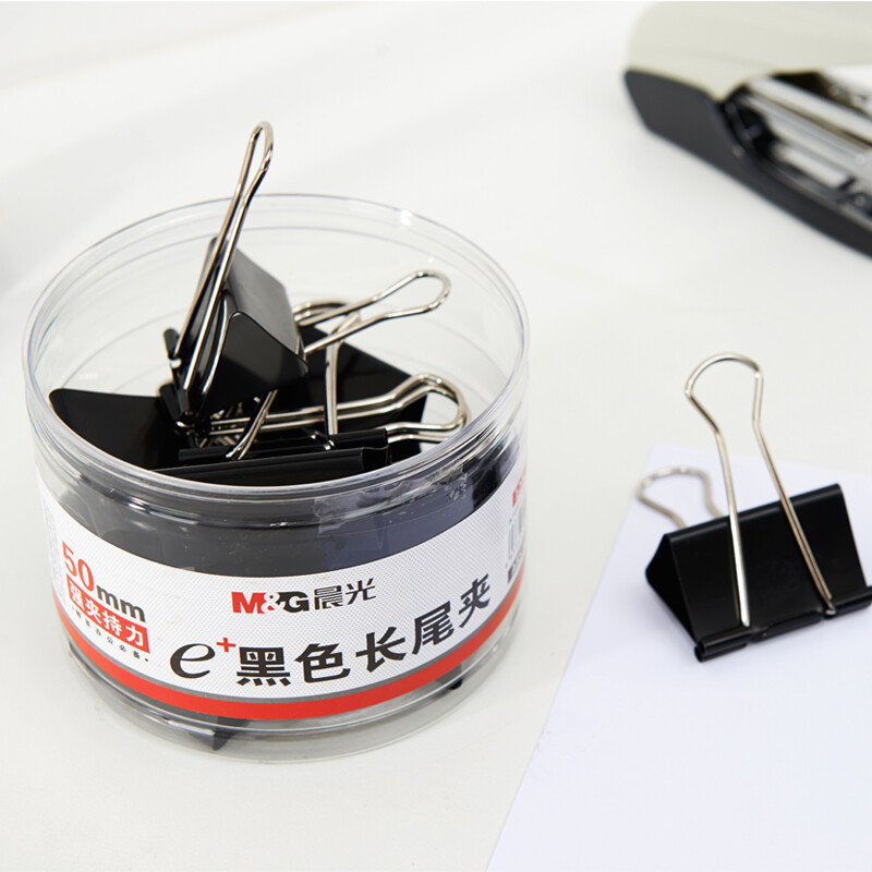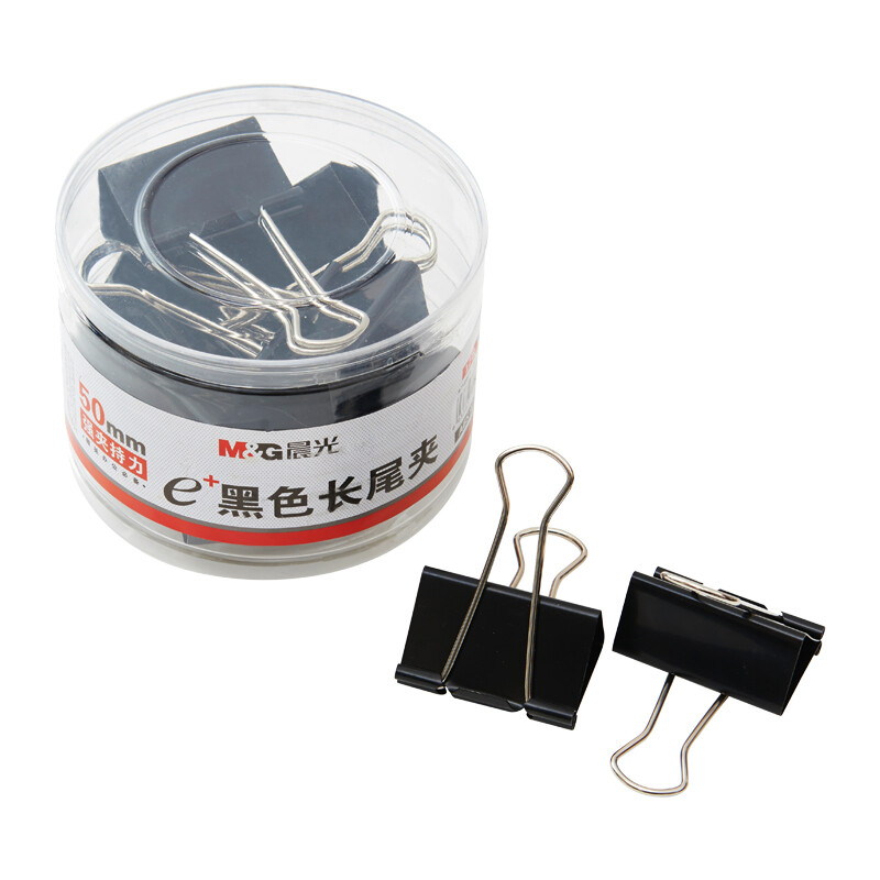 晨光(M&G)文具1#50mm 12只/罐 黑色长尾夹 大号金属票据夹 Eplus系列办公燕尾夹 ABS92732 自营