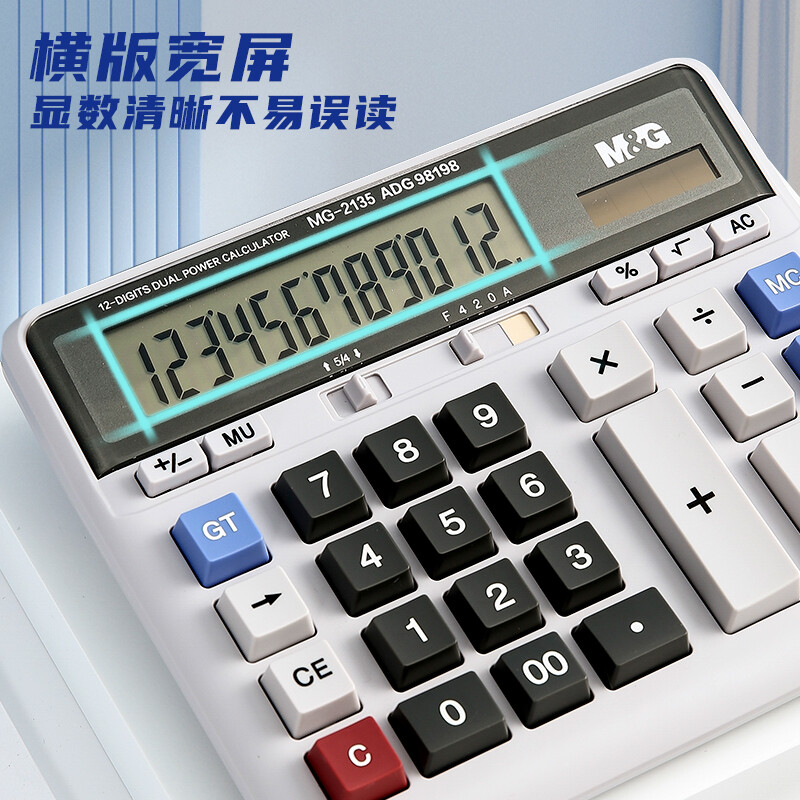 晨光(M&G)文具电脑按键计算器 双电源桌面计算机12位大屏计算机 财务及银行人员适用 单个装ADG98198 自营