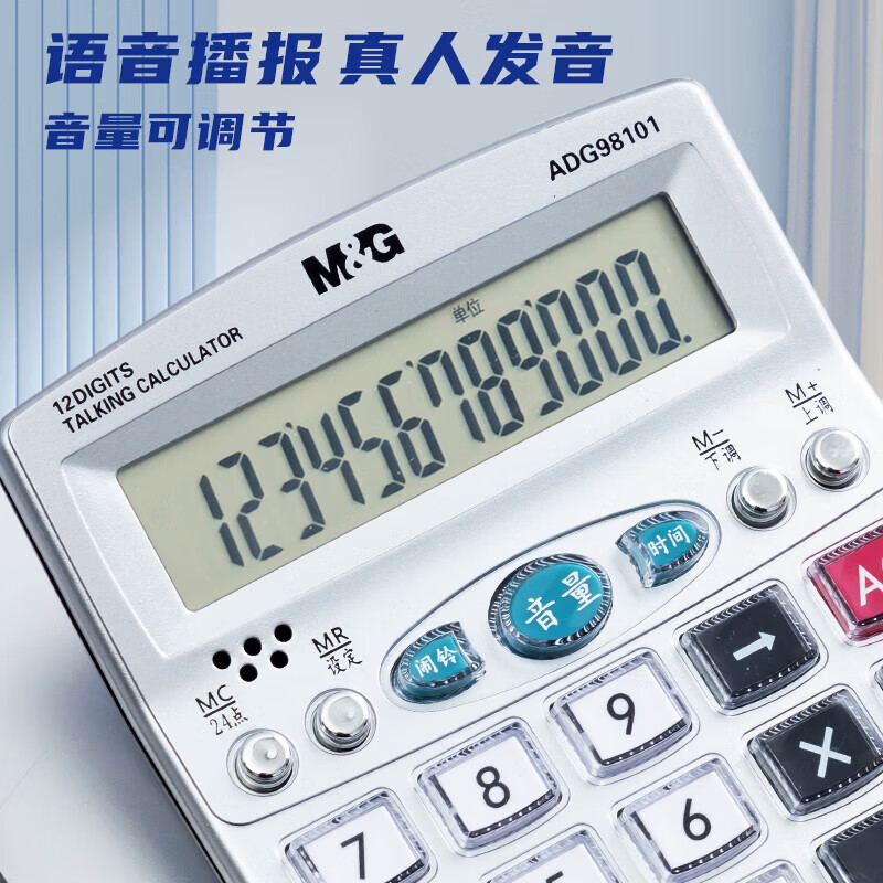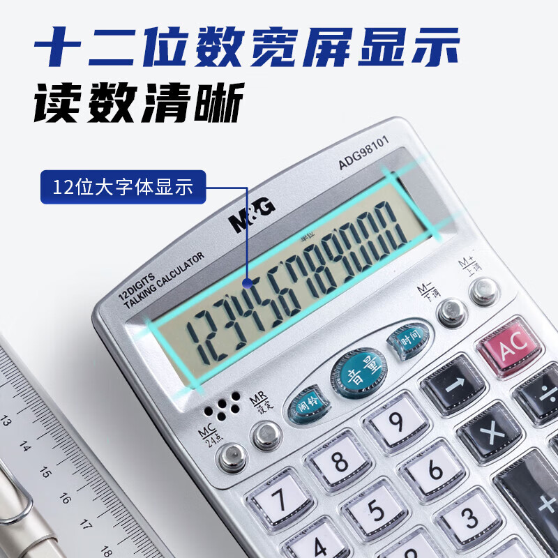 晨光(M&G)银色语音型计算器 水晶按键桌面计算机 学生/办公通用12位大屏幕计算器 (4个装) ADG98101 自营