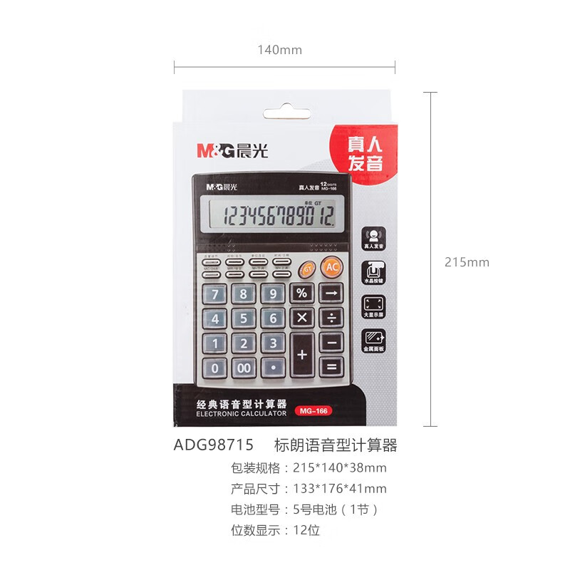 晨光(M&G)文具金属面板计算器 学生/办公通用12位 大屏幕计算器 单个装 ADG98715 自营