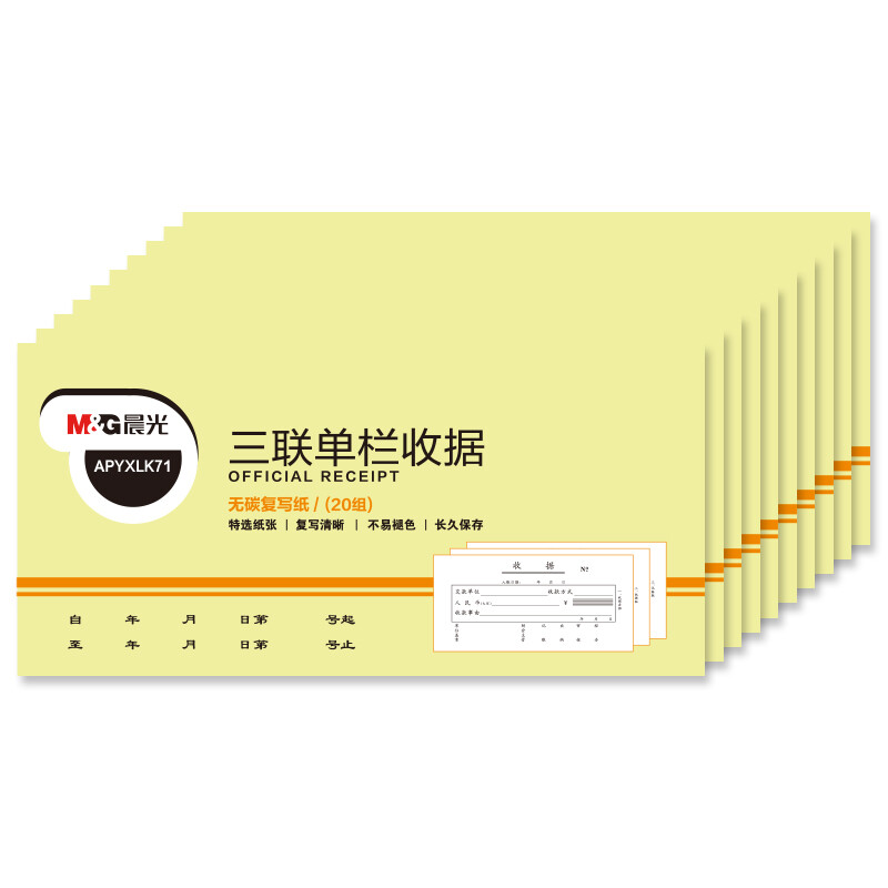 晨光(M&G)文具54K三联单栏收据 无碳复写收款收据单 财务手写单175*87mm 办公用品 10本装APYXLK71 自营