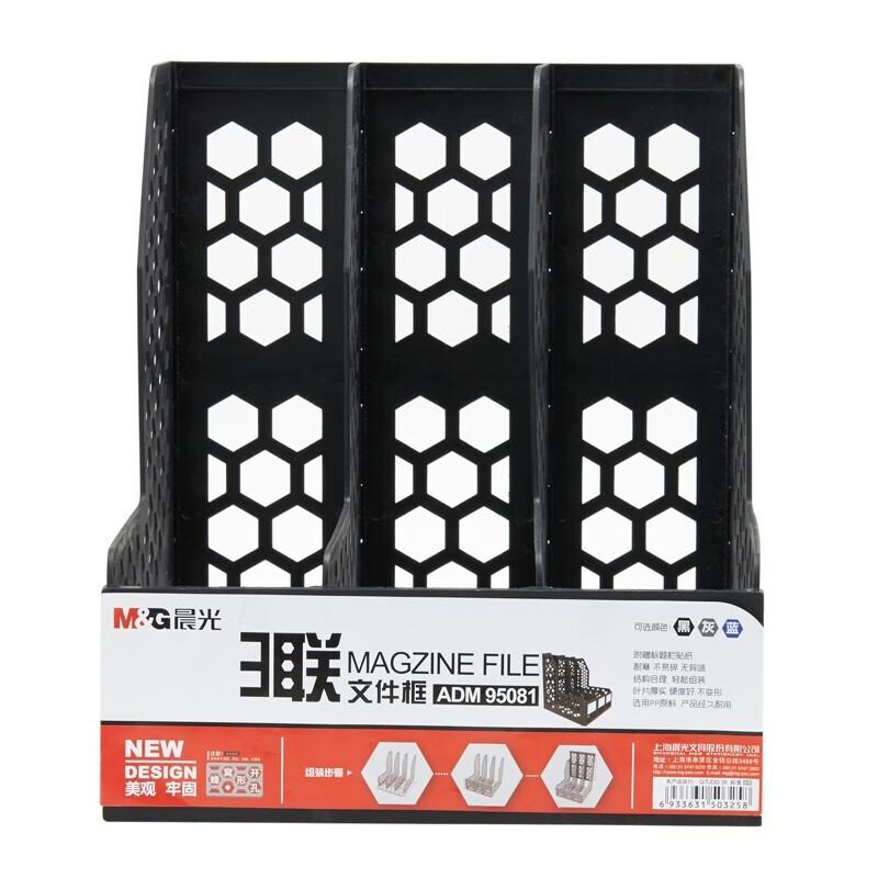 晨光(M&G)ADM95081蜂窝形三联文件框 稳固型文件架文件筐 资料整理收纳文件栏 灰色 单个装+组装说明书 自营