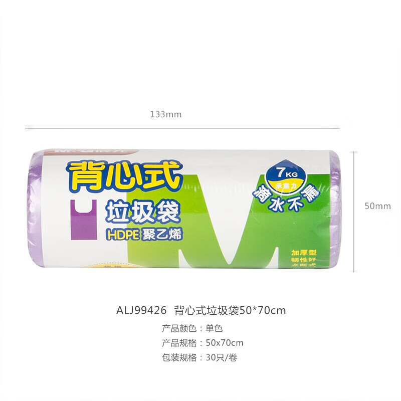 晨光(M&G)背心式垃圾袋 手提式清洁袋 垃圾分类 50*70cm紫色 30只/卷 8卷装 ALJ99426 自营