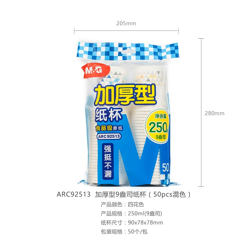 晨光 5包 250ml加厚型纸杯 9盎司一次性水杯 商务办公茶水杯子 50只/包ARC92513 自营