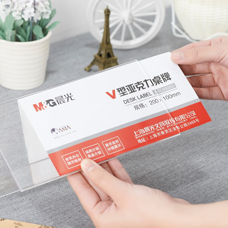 晨光(M&G)商务V型会议桌牌200*100mm 会议桌牌席位卡 座位牌广告展示牌 ASC99353 单个装 自营