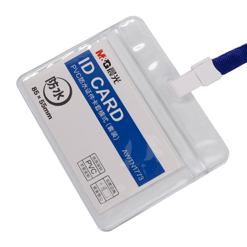 晨光(M&G)文具PVC防水证件卡套 横版透明工作证/员工牌/胸卡/出入证保护套 卡套*20个+挂绳*20根AWTN1773 自营