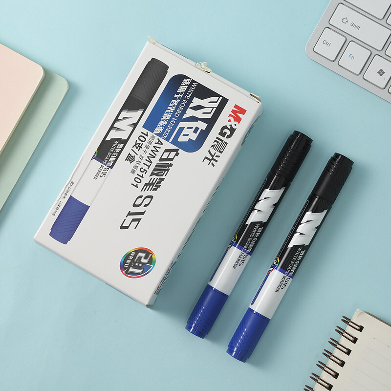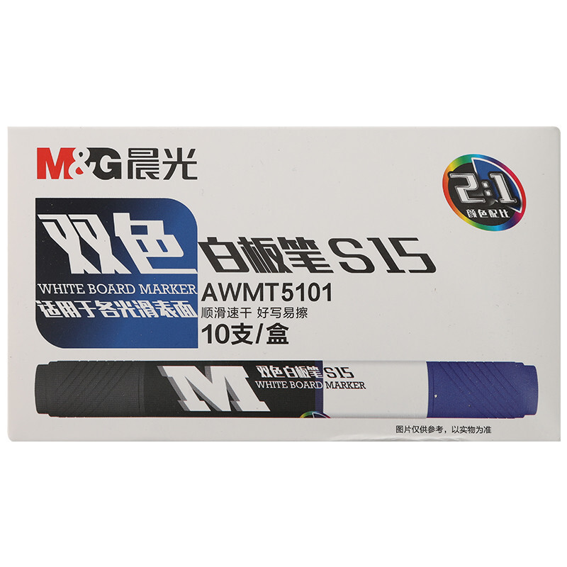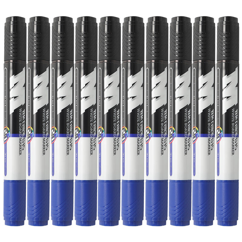 晨光(M&G)文具黑+蓝双色办公白板笔 无痕速干会议笔 双头记号笔 10支装/盒AWMT5101B 自营