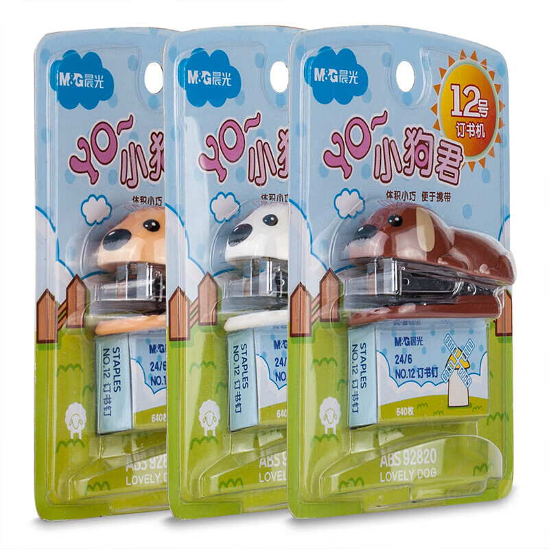 晨光(M&G)订书机 标准型多功能订书器省力小中大号重型资料纸装订定书 卡通小狗款 ABS92820 6个装 自营