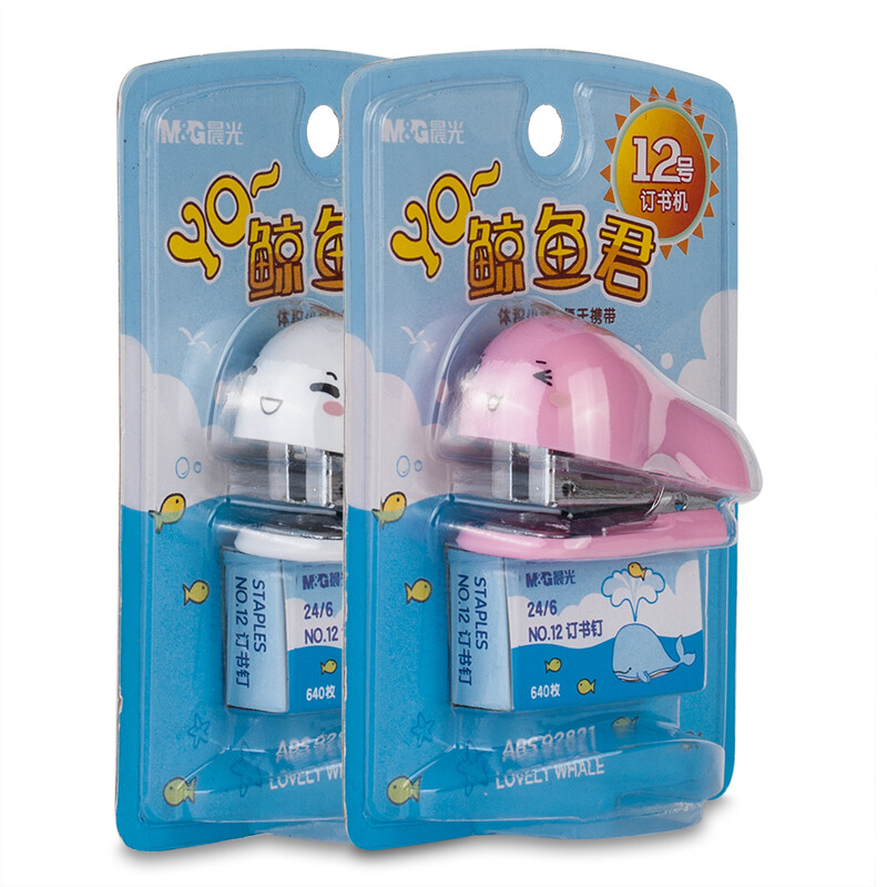 晨光 订书机 标准型多功能订书器省力小中大号重型资料纸装订定书 卡通鲸鱼款 ABS92821 5个装 自营