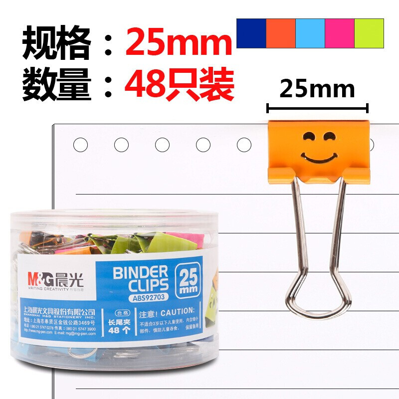 晨光(M&G)ABS92703 25mm彩色可爱笑脸长尾夹 金属票据夹 办公学习用燕尾夹 一盒48个装 自营