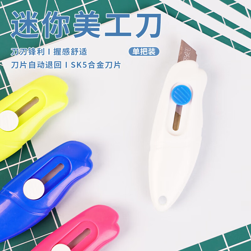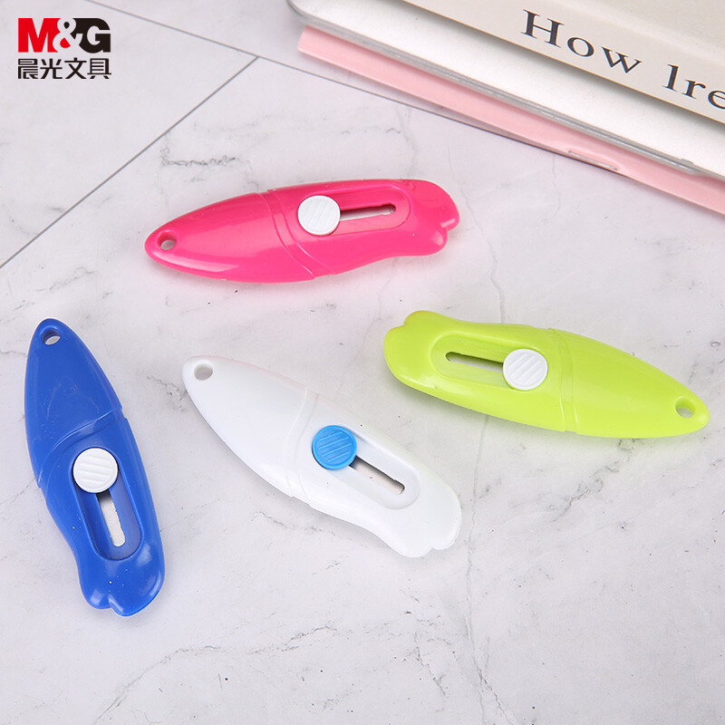 晨光(M&G)文具9mm自动伸缩小号迷你美工刀 MINI壁纸刀裁纸刀 拆快递小刀 单把装颜色随机ASS91410 自营