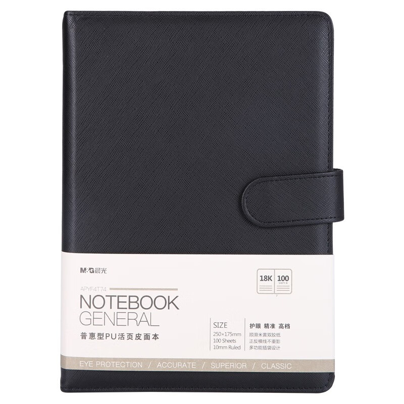 晨光(M&G)文具B5/18K 100张黑色活页笔记本 会议记录本按扣皮面本 普惠型商务记事本子 单本装APYF4T74 自营