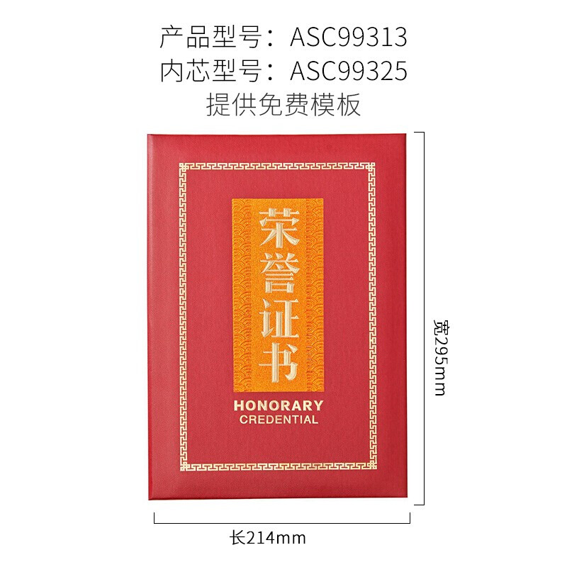 晨光(M&G)办公会议颁奖尊贵特种纸荣誉证书6K ASC99313 单本装含芯 295mm*214mm 内芯型号:ASC99325 自营